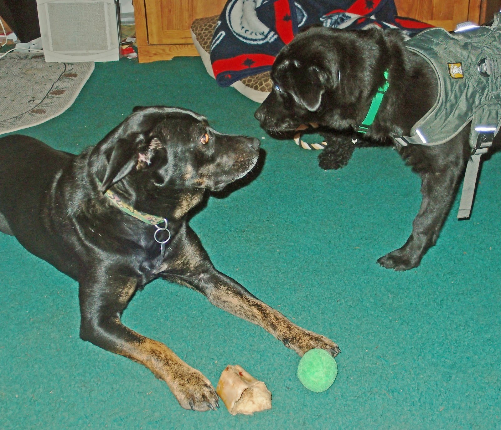However, the pain meds are definitely helping Cora feel somewhat better. Cora spent a couple hours exploring the yard today. I felt guilty leaving her out so long, but when I tried to bring her in, by leash not halter, she put on the breaks. She is stubborn. With the halter I can “coax” her a long fairly easily, but I can’t pull her forward on the leash. Besides being a bad approach, it would jerk her forward onto her stump. It took much coaxing, prodding, nudging, pleading, muttering and determination but Cora is finally inside and trying to settle into a nap.